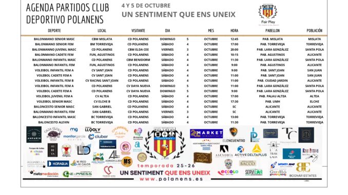 AGENDA DE PARTIDOS POLANENS. 27 DE SEPTIEMBRE