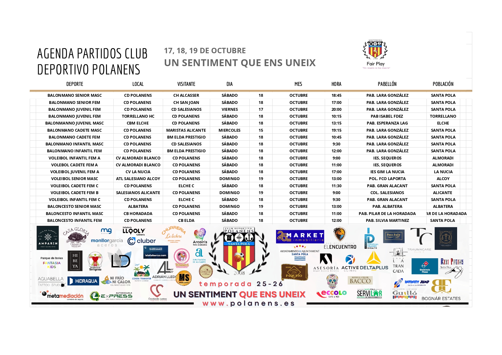AGENDA PARTIDOS POLANENS 8, 10 Y 11 DE OCTUBRE