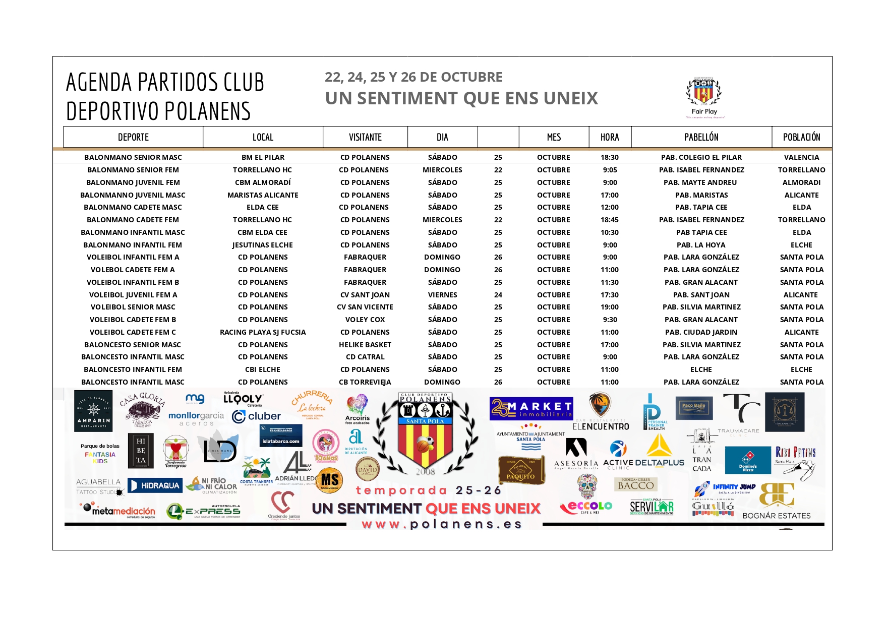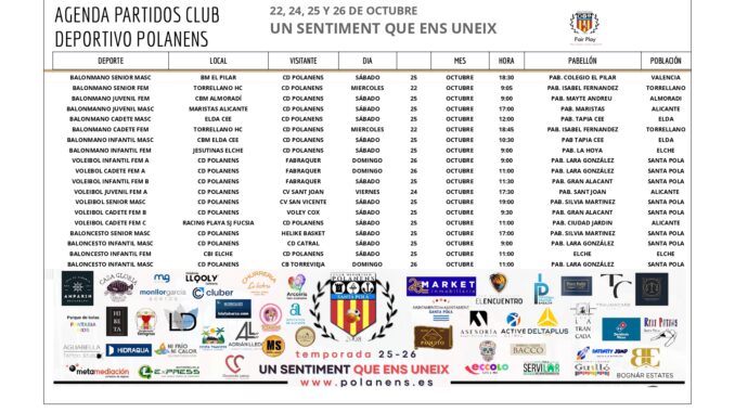 AGENDA DE PARTIDOS POLANENS. 17,18 Y 19 DE OCTUBRE