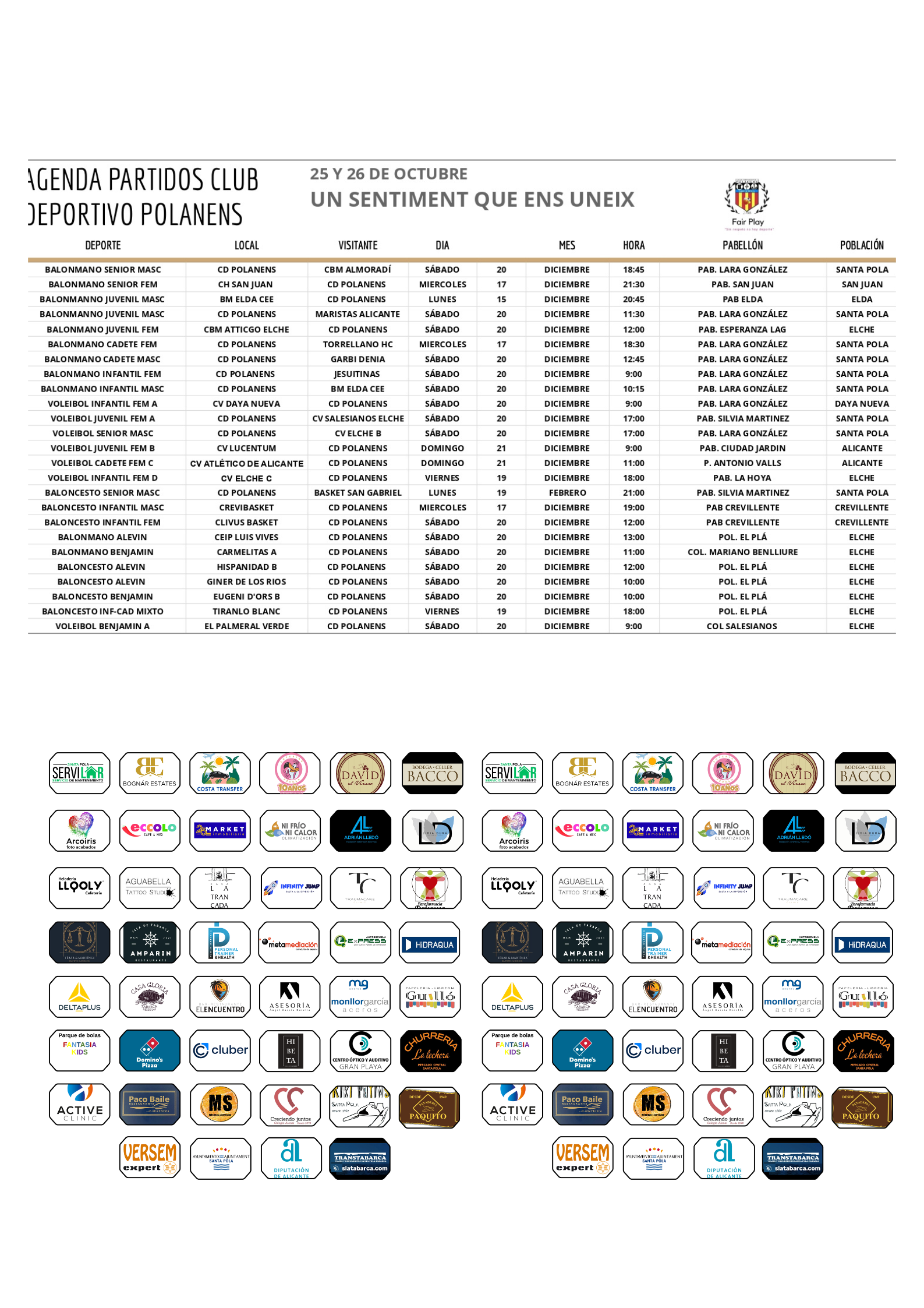 AGENDA PARTIDOS POLANENS 12,13 Y 14 DICIEMBRE