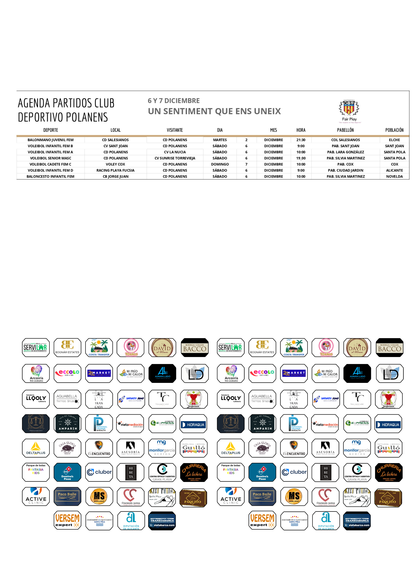 RESULTADOS EQUIPOS POLANENS 28, 29 Y 30 NOVIEMBRE