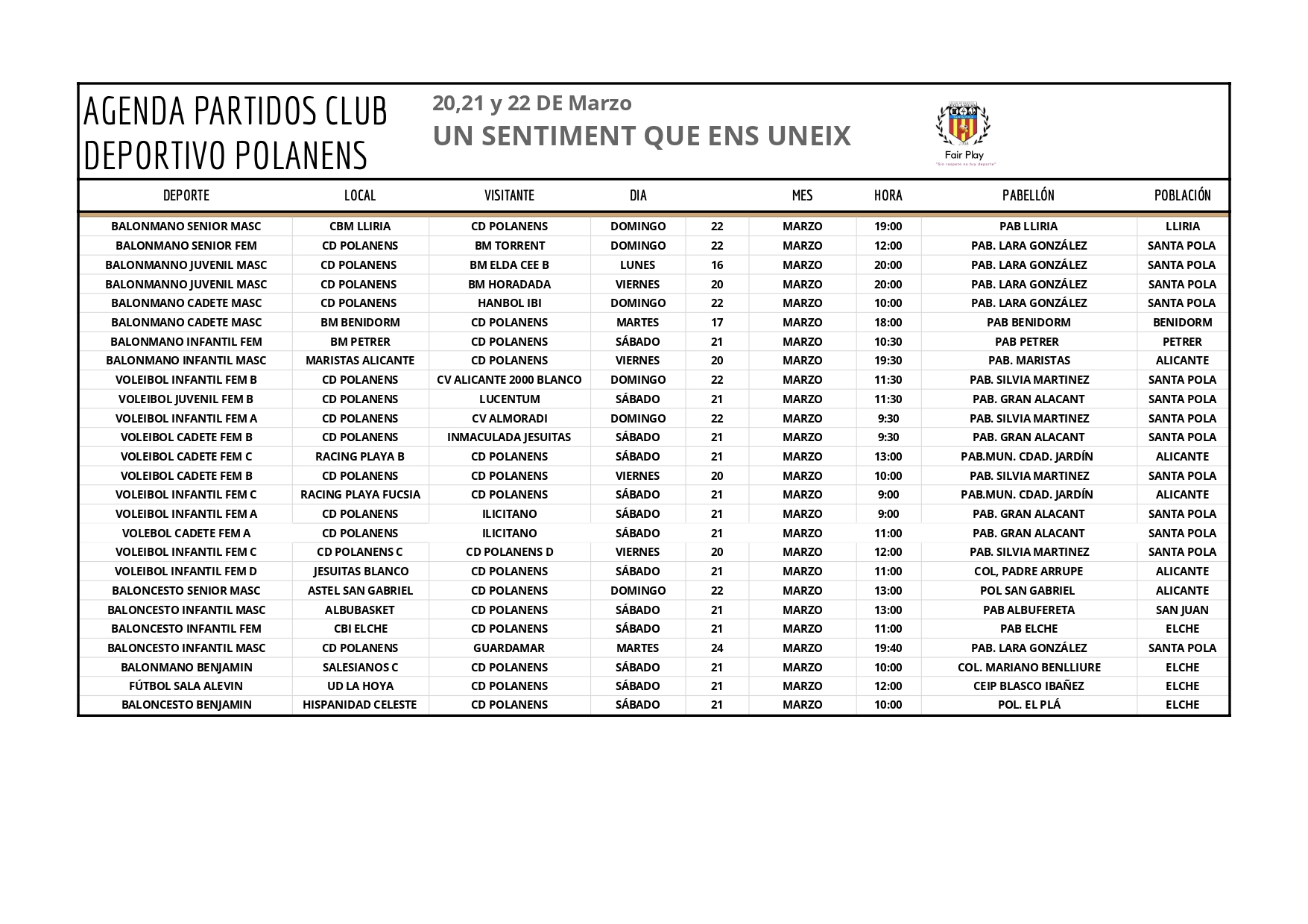 AGENDA PARTIDOS POLANENS 11, 13, 14 Y 15 MARZO