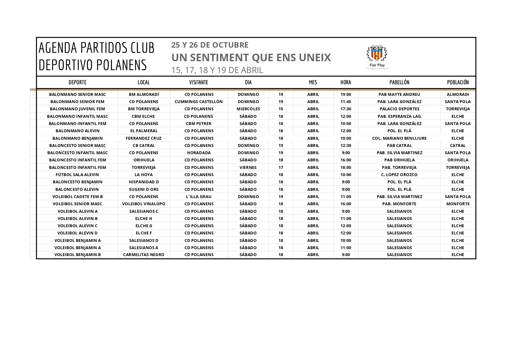 AGENDA PARTIDOS POLANENS 26 AL 29 DE MARZO